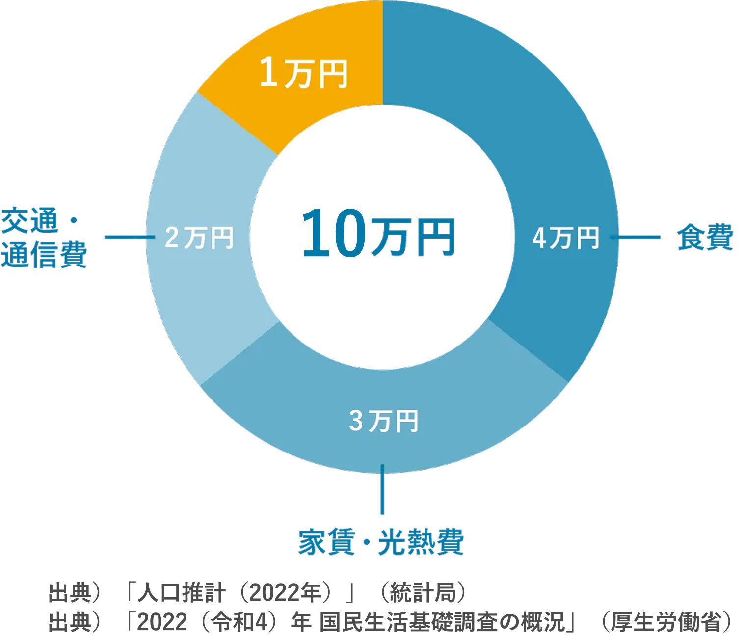 家賃・光熱費が4万円、交通・通信費が3万円。